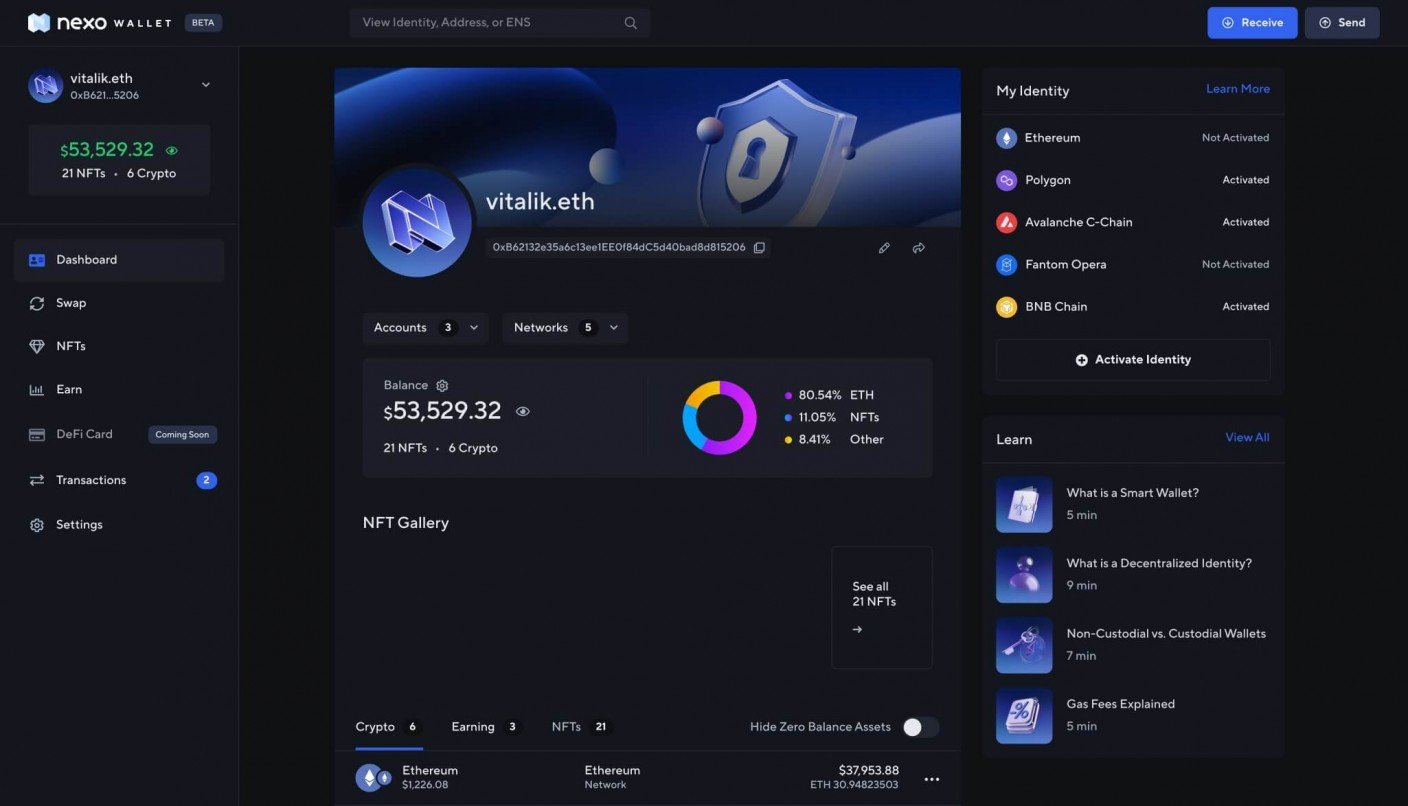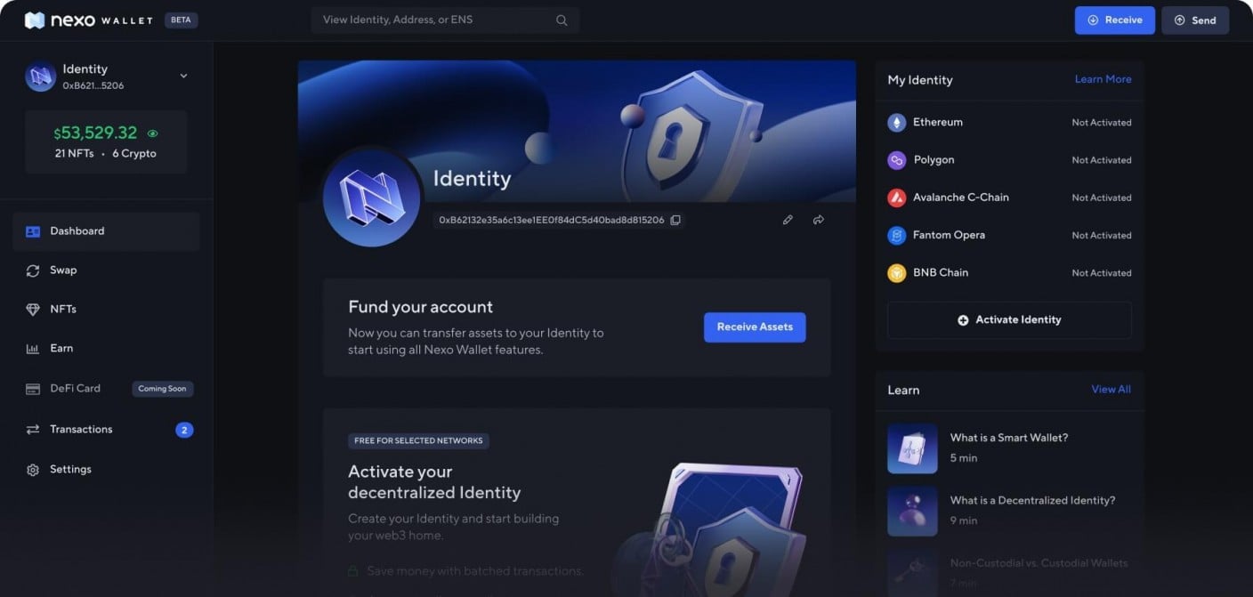 Build your own digital Identity, access DeFi in a cost-efficient way, and safely store NFTs all through a smart non-custodial wallet.